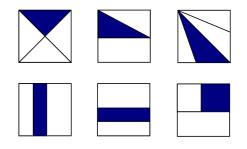 .5) Indica qué fracción del cuadrado representa cada una de las secciones.
